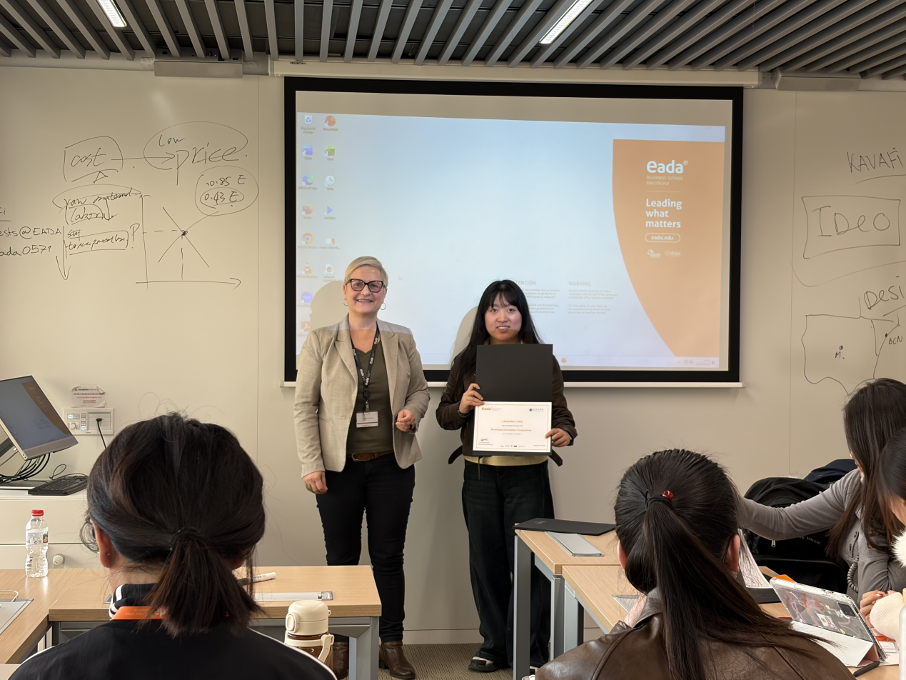 此次交流最大的收获,是思维模式的革新与自我认知的提升。过去我习惯于线性思维与标准答案,而 EADA 商学院的课程始终鼓励 “大胆质疑、疯狂构思、快速试错”。从 “棉花糖挑战” 中学习快速原型与迭代优化,到 “素食者闪光灯 APP” 等创新案例中理解 “痛点即机遇”,我逐渐养成了以用户为中心、以创新为导向的思维习惯。同时,走出舒适区的跨文化交流让我变得更加自信与开放:从最初担心语言表达不流畅,到主动参与课堂辩论、与外国老师深入交流,每一次尝试都让我突破自我。我深刻认识到,真正的成长不仅在于知识的积累,更在于敢于挑战固有认知、拥抱未知的勇气。